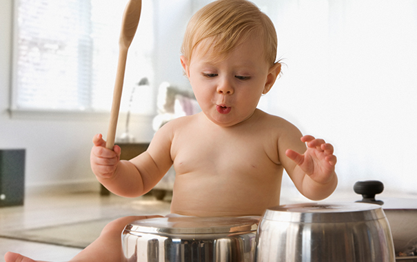 Внесіть розмаїття у ігри вашої дитини і створіть для неї безпечне середовище, виділивши малюку спеціальне місце для гри. Наприклад, подумайте про виділення низького комода у кухні для дитячих досліджень. Заповніть його пластиковими контейнерами, шпателями та старими каструлями і сковорідками. Замкніть решту шаф надійними засувками.